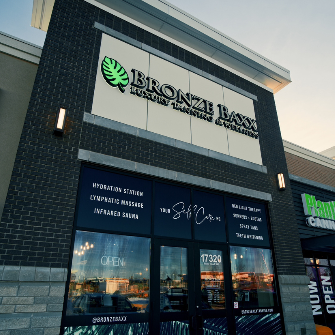 Bronze Baxx Luxury Tanning & Wellness has 8 locations in Calgary, Airdrie and Edmonton. Started in 2007, with the desire to offer the BEST in both sunbed and spraytanning, we have evolved into a full service Lifestyle club for our guests. We focus on an experience, while knowing that every single one of our services gives amazing results you will love. Our members have access to Redlight Therapy, Infrared Saunas, Ultra Luxury Sunbeds, Ballancer Pro Lymphatic Massage, Hydration Steam Pods, Spraytans and Teeth Whitening.
